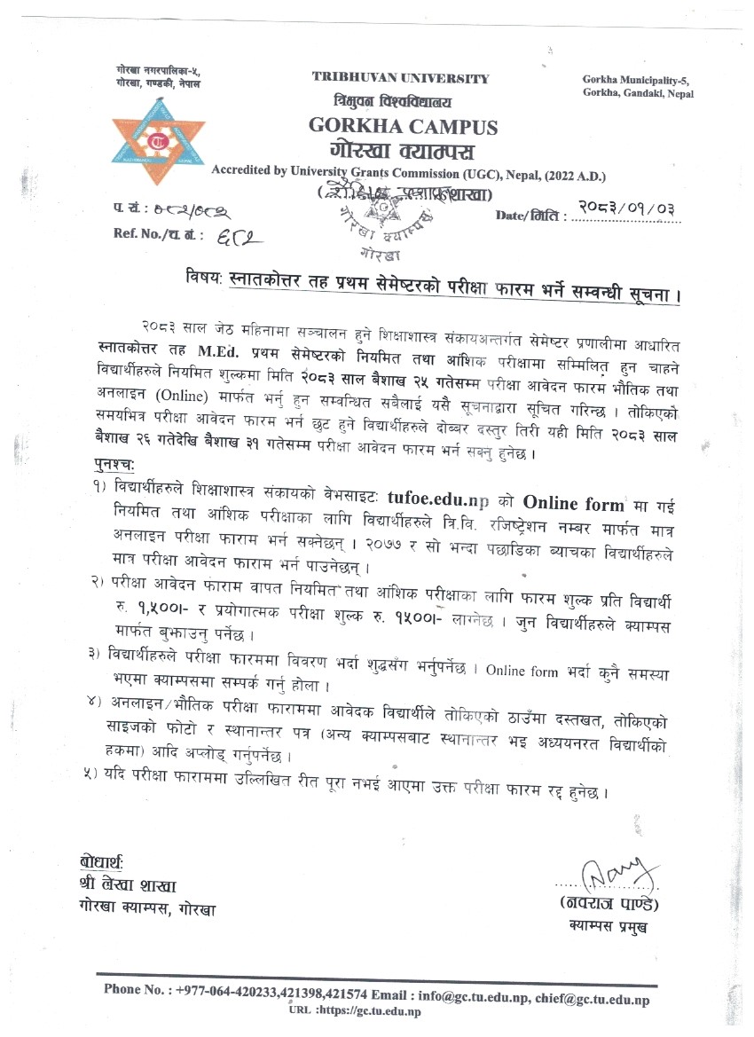 Gorkha Campus is one of the constituent campus of Tribhuvan University contributing to the development of higher education in various subjects with academic excellence form the time of its inception some forty six years ago. In addition to teacher education in Bachelor and Master degree, it has started Bachelor program in core Science .It’s location in the historical district, Gorkha, at the heart of the country, Nepal has added its importance. A team of competent teaching and non-teaching staff has been working with professional commitment to meet its vision of being a leading University of Gandaki province, Nepal. Gorkha Campus has made its identity with its unique features, high skilled and compete...