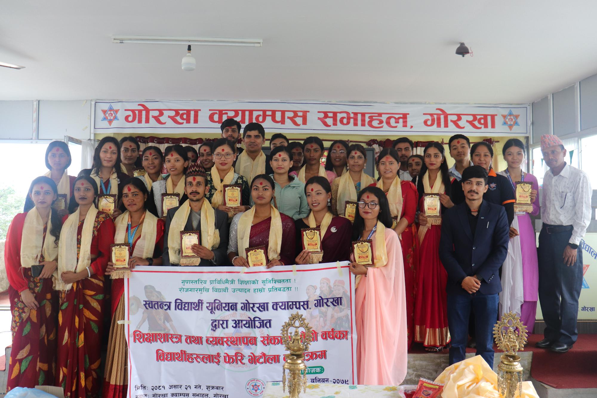 स्वतन्त्र विद्यार्थी युनियन गोरखा क्याम्पस, गोरखाको आयोजनामा स्नातक तह चौथो वर्षका विद्यार्थीहरुलाई फेरी भेटौला कार्यक्रम सम्पन्न भयो ।