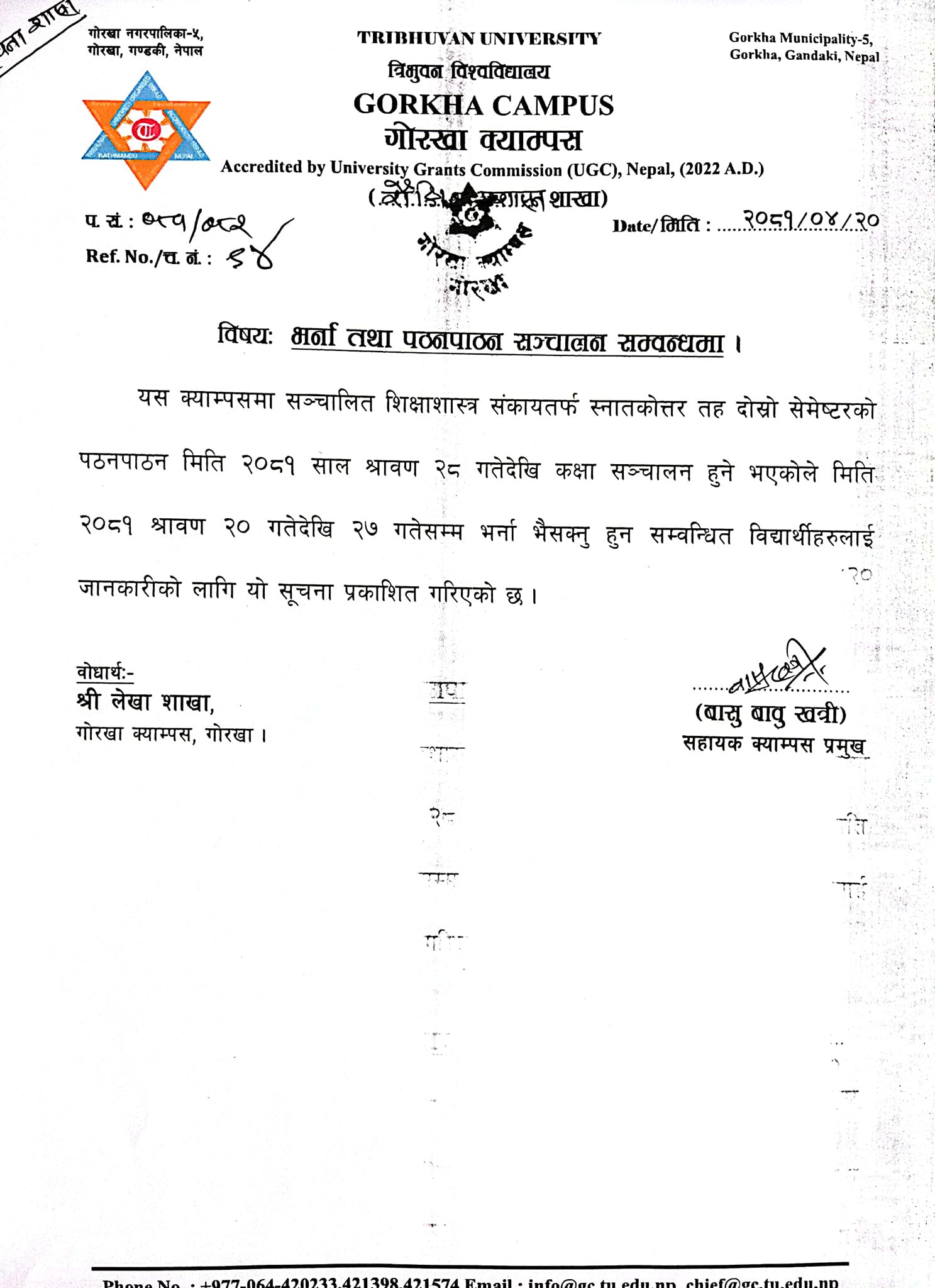 भर्ना तथा पठनपाठन सञ्चालन सबम्बन्धी सूचना