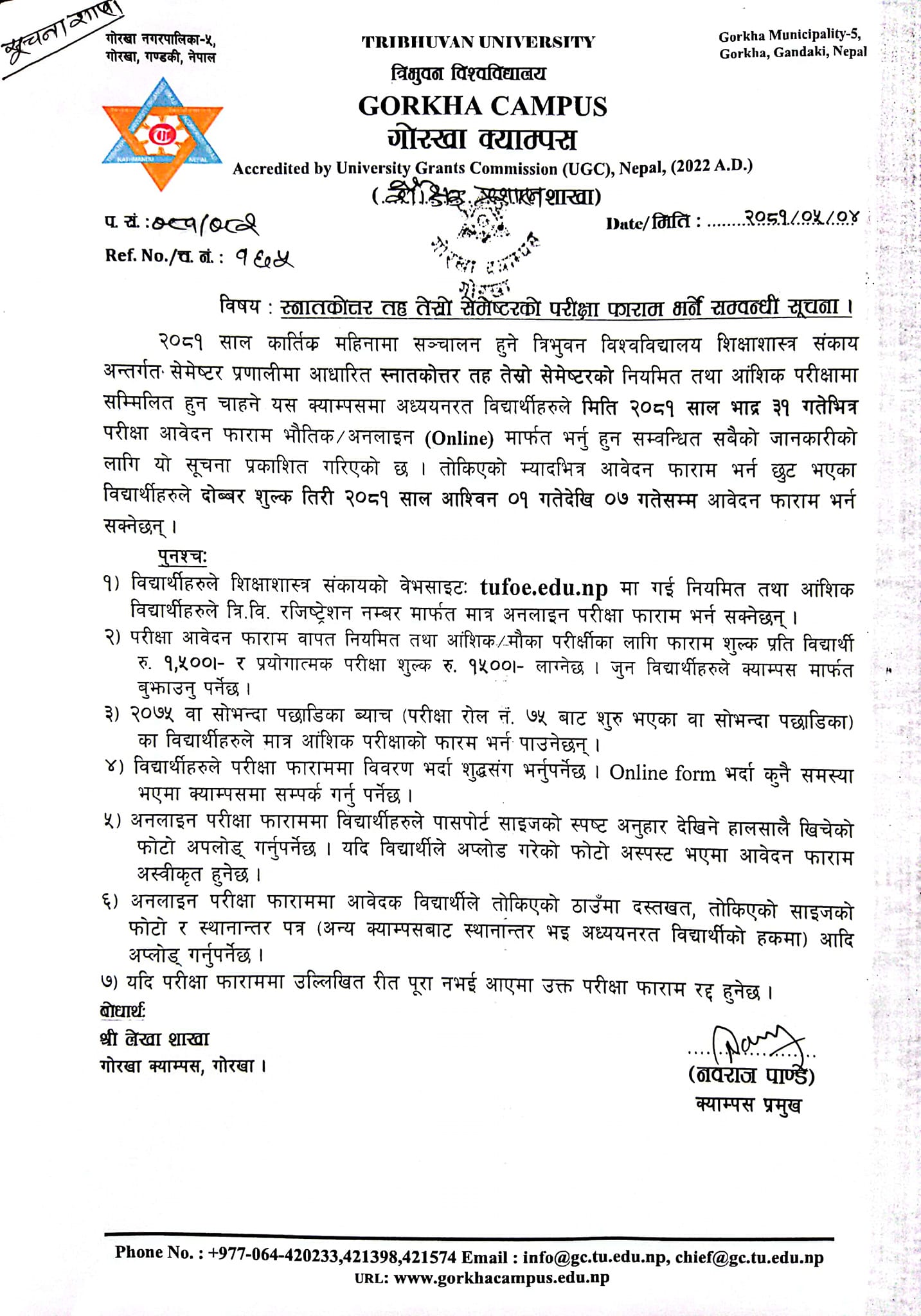 स्नातकोत्तर तह तेस्रो सेमेष्टरको परीक्षा आवेदन फारम भर्ने सूचना