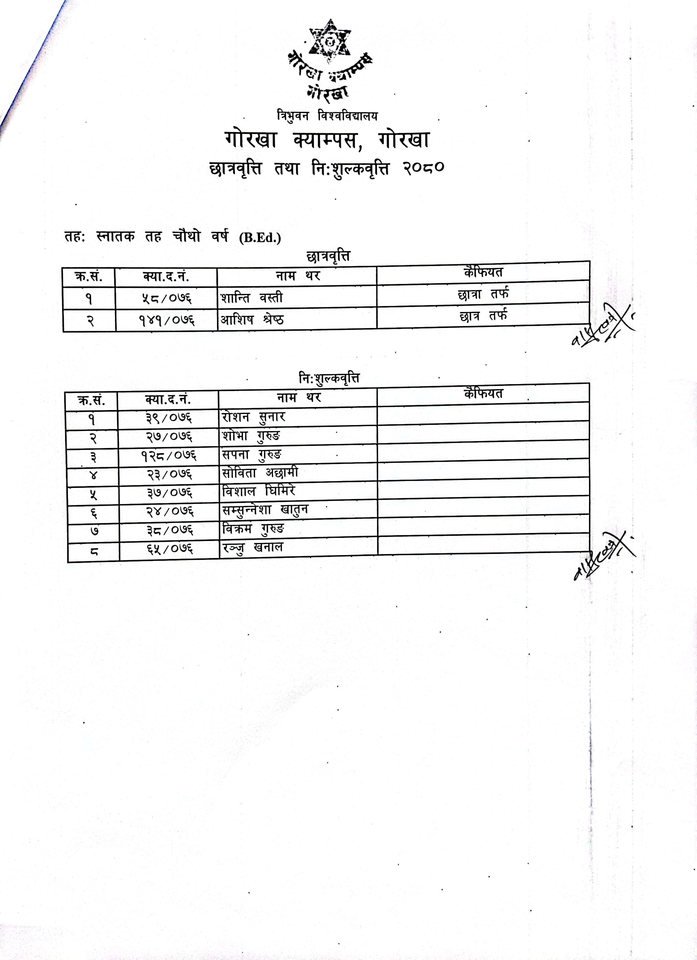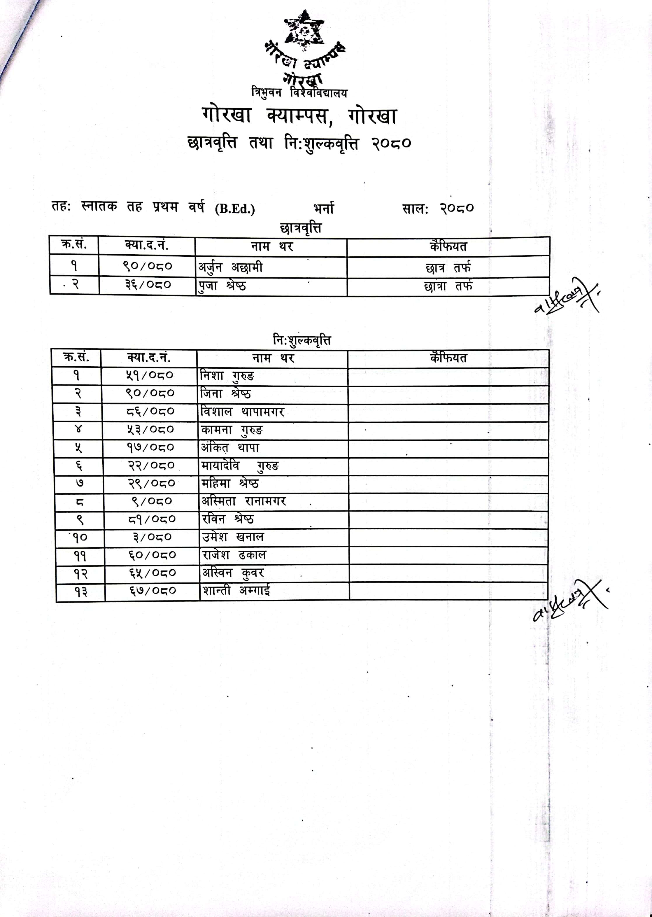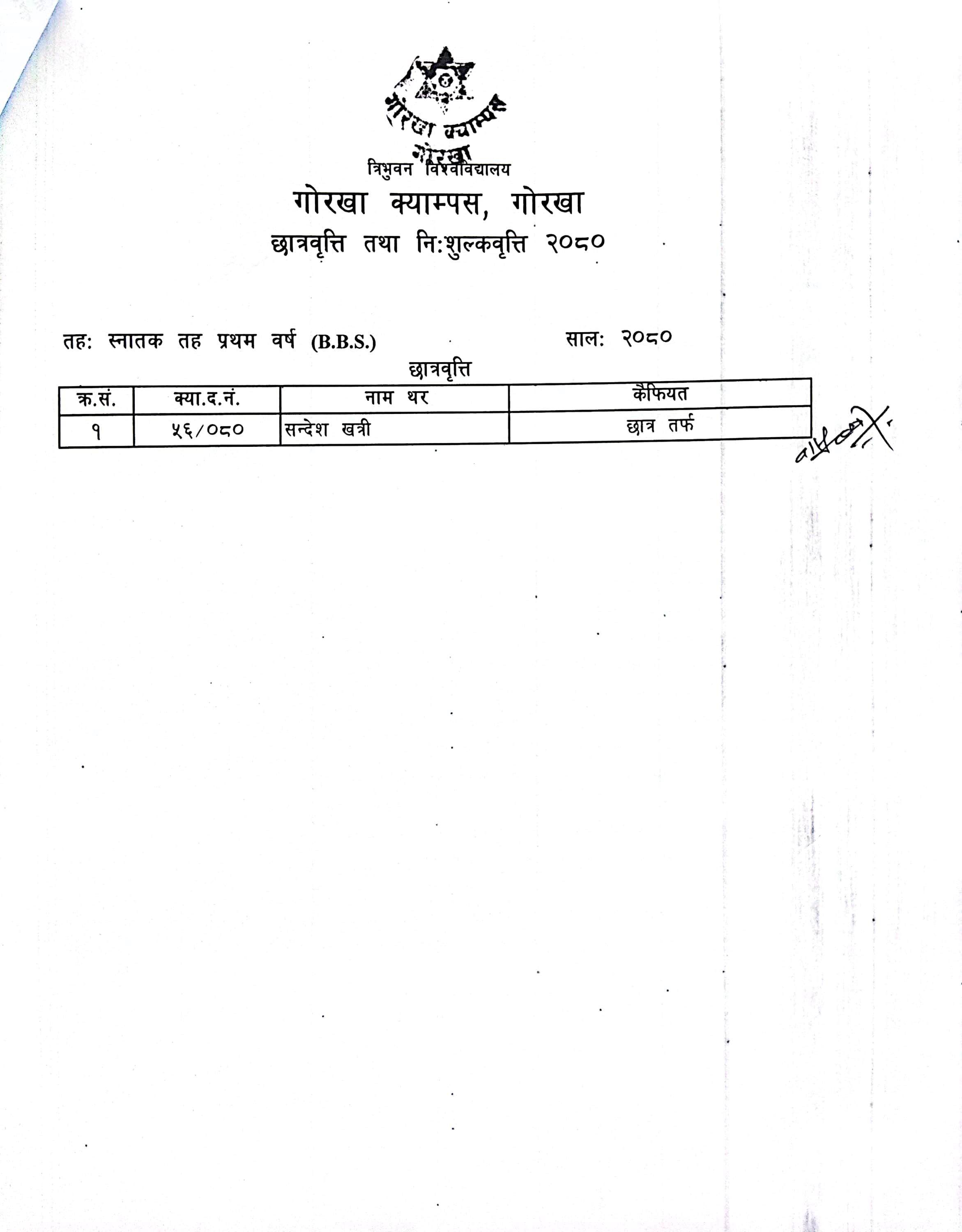 छात्रवृत्ति तथा निःशुल्कवृत्तिको लगि छनौट भएका विद्यार्थीहरुको नामावली प्रकाशन ।