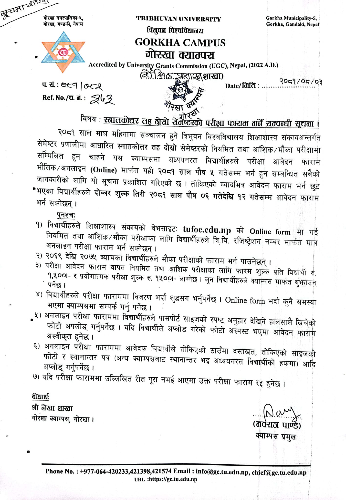 स्नातकोत्तर तह दाेस्रो सेमेष्टरको परीक्षा आवेदन फारम भर्ने सूचना