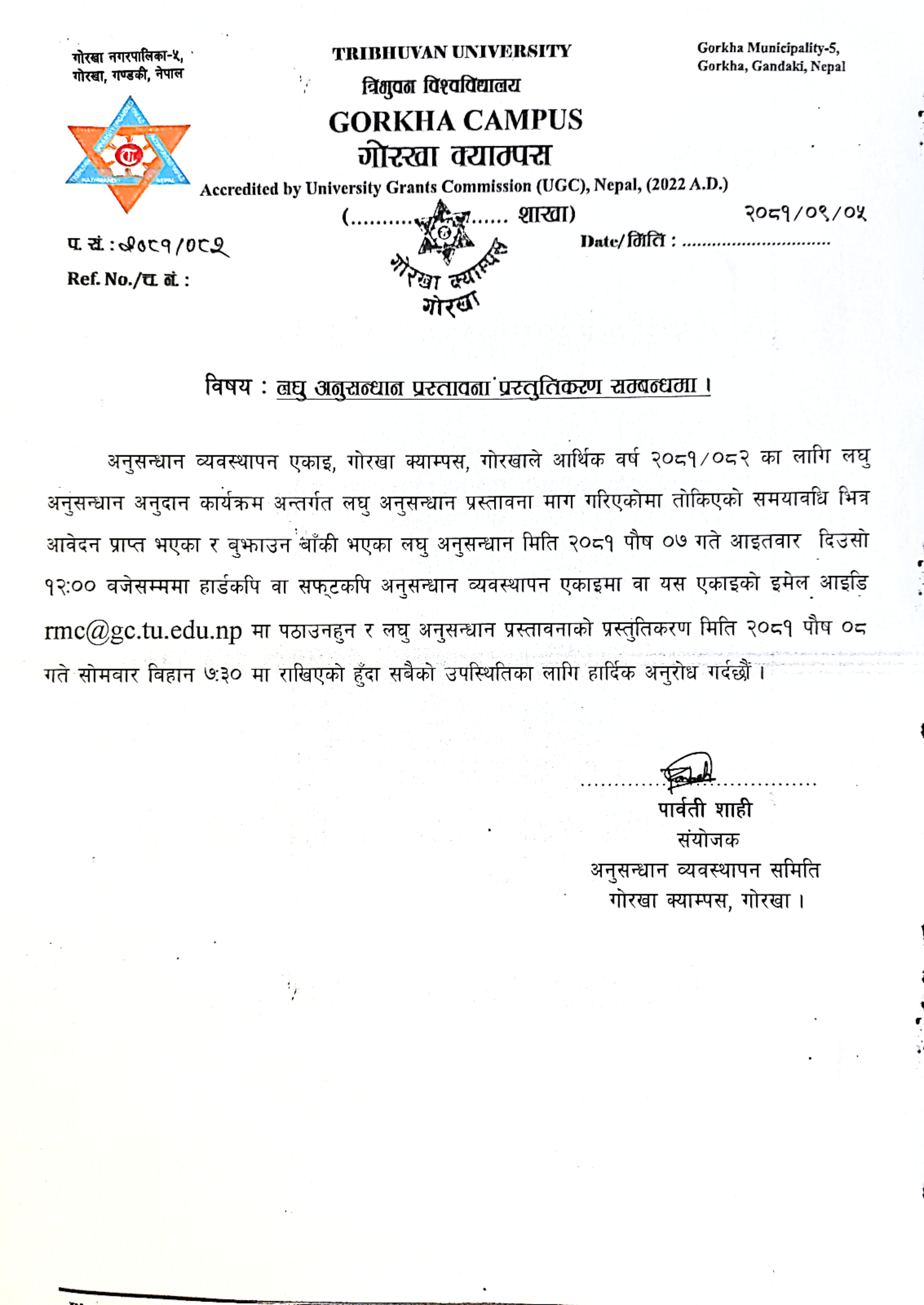 लघु अनुसन्धान प्रस्तावना प्रस्तुतिकरण सम्बन्धमा ।