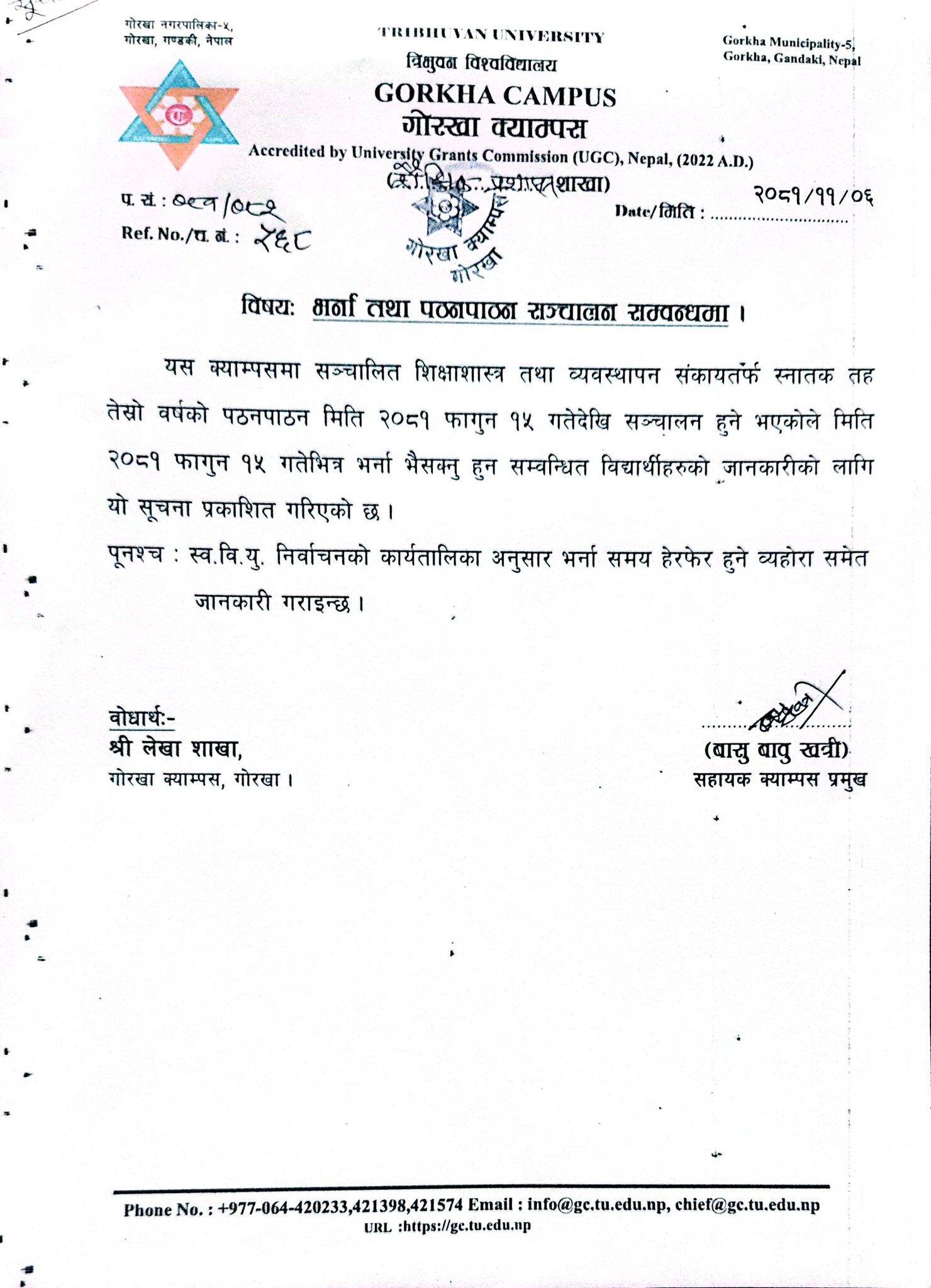 भर्ना तथा पठनपाठन सञ्चालन सबम्बन्धी सूचना