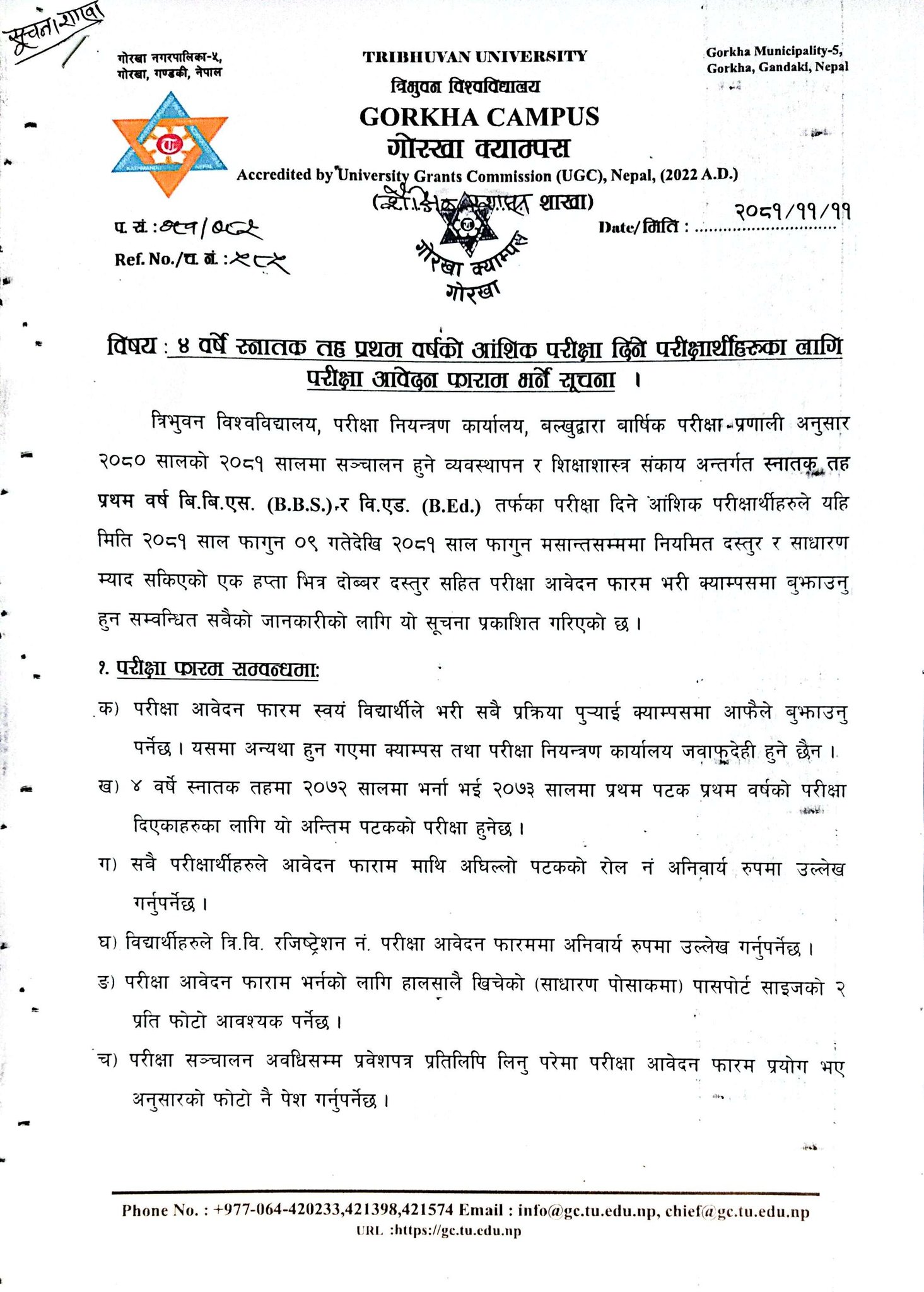 ४ वर्षे स्नातक तह प्रथम वर्षको आंशिक परीक्षा दिने परीक्षार्थीहरूका लागि परीक्षा आवेदन फारम भर्ने सूचना