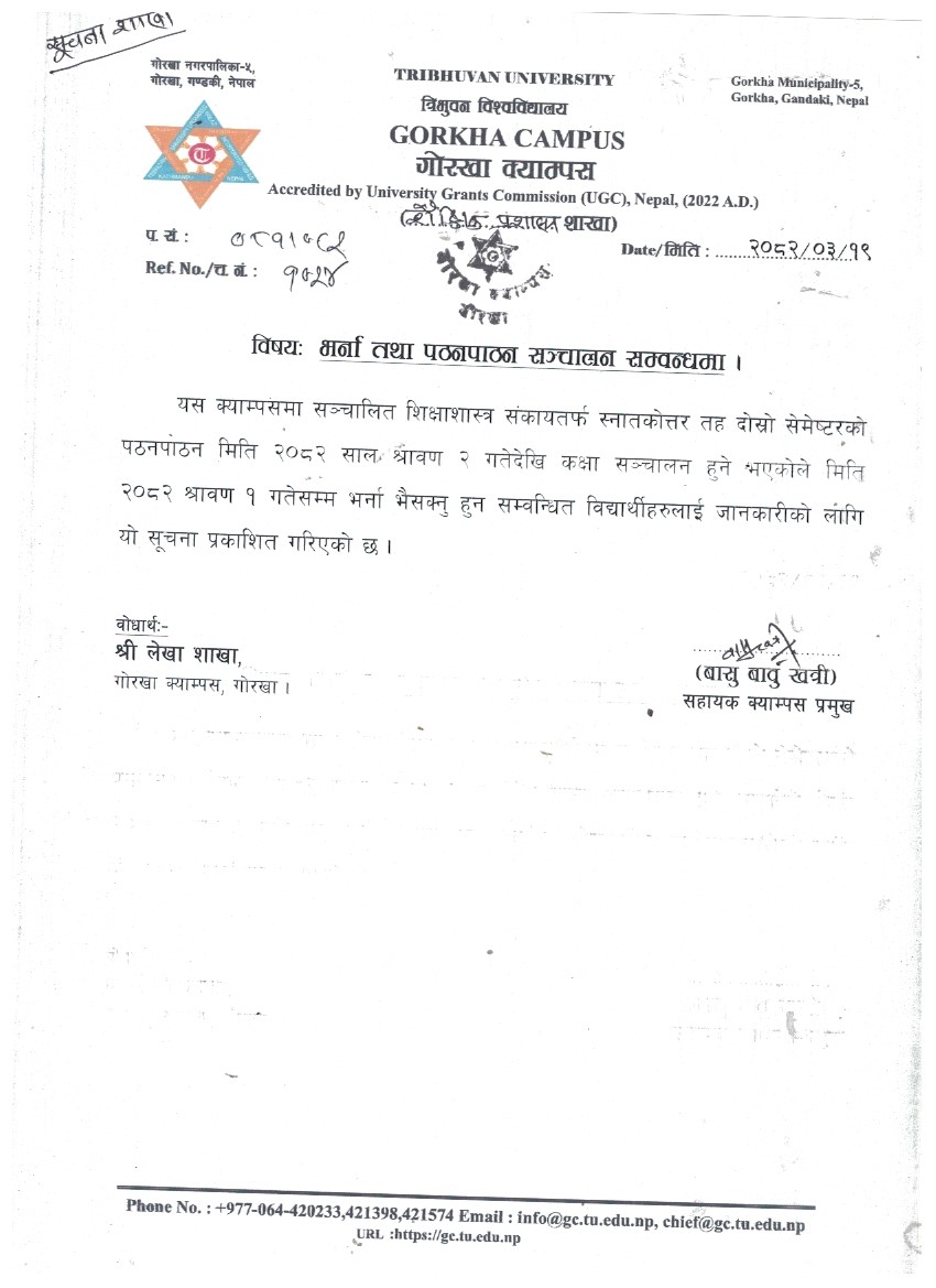 भर्ना तथा पठनपाठन सञ्चालन सबम्बन्धी सूचना