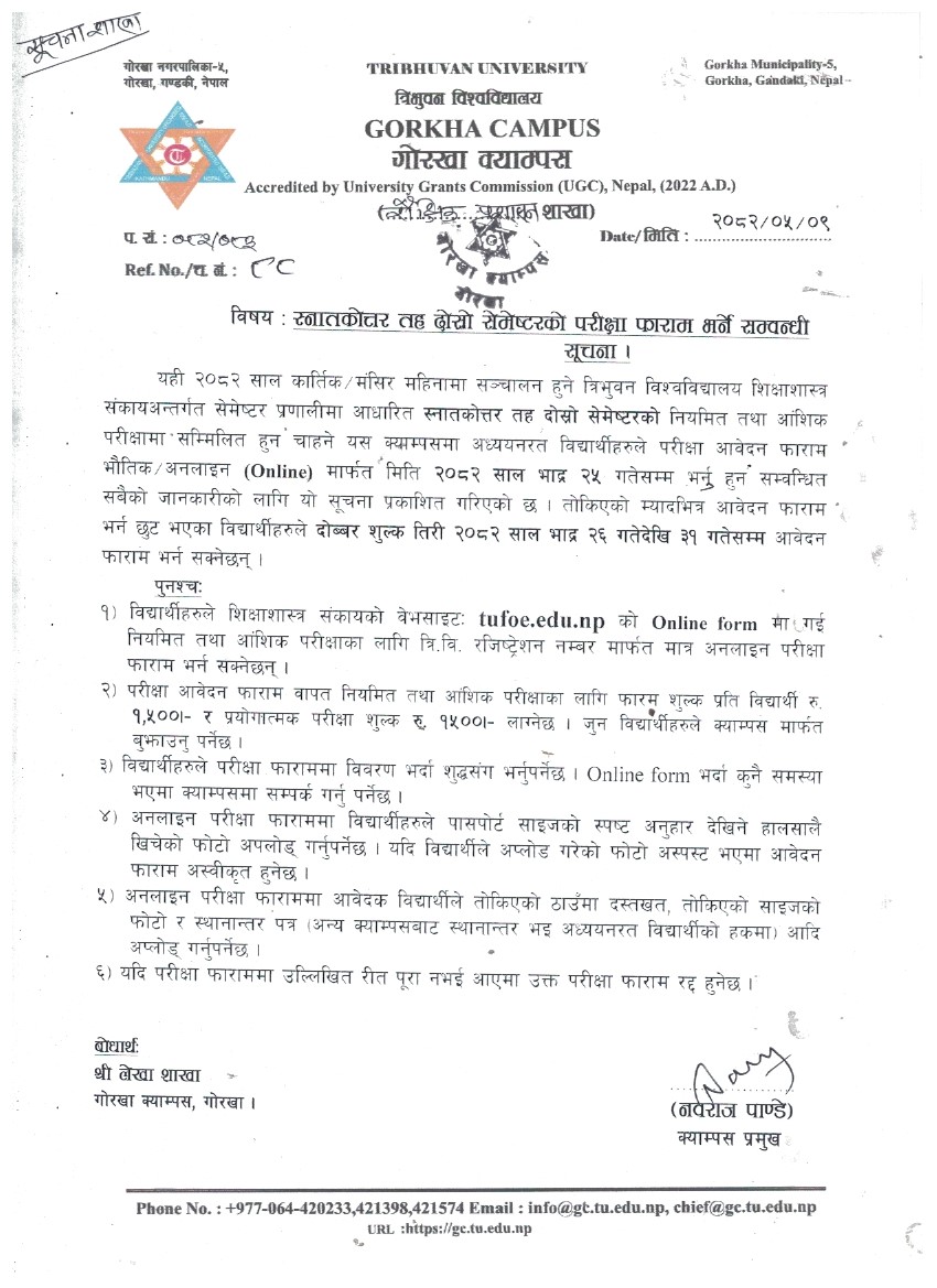 स्नातकाेत्तर तह दाेश्राे सेम्ष्टरकाे परीक्षा फारम भर्ने सूचना ।