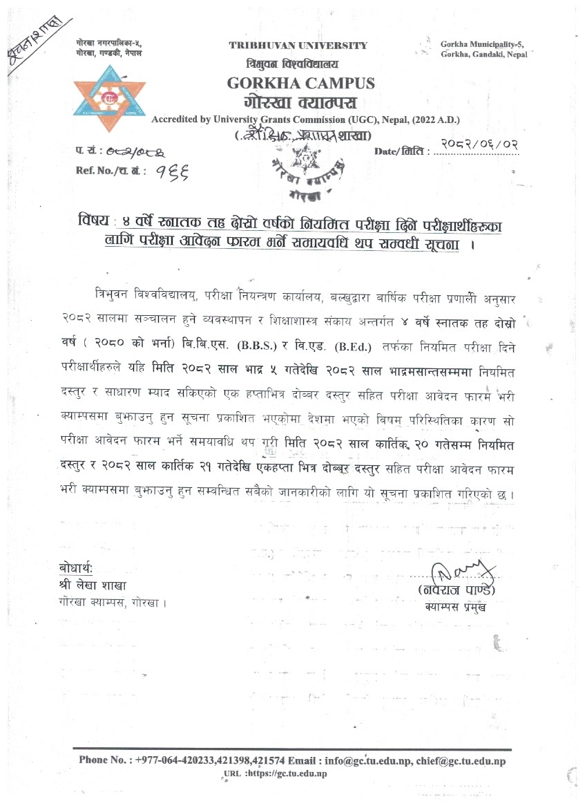 ४ वर्षे स्नातक तह दोश्रो वर्षको नियमित परीक्षा दिने परीक्षार्थीहरुका लागि परीक्षा आवेदन फारम भर्ने सूचना (Revised:2082-05-31)