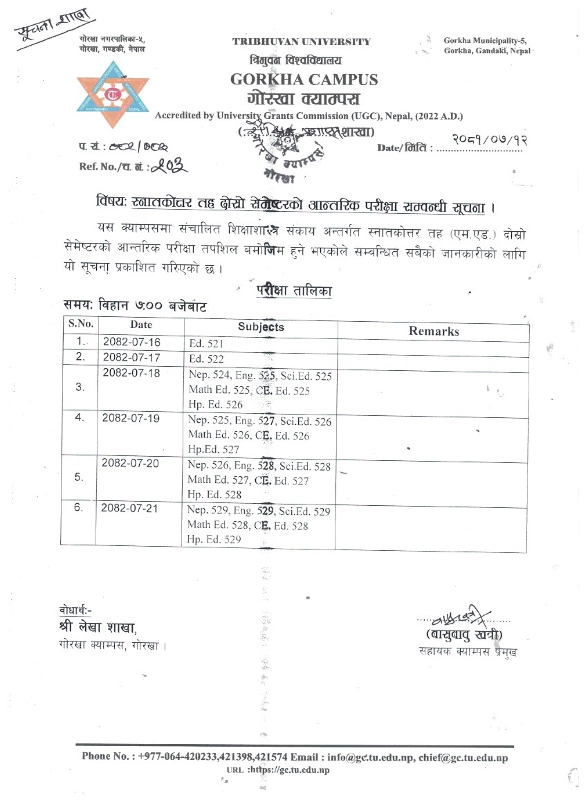 स्नातकाेत्तर तह दाेश्राे सेमेष्टरकाे आन्तरिक परीक्षा सम्बन्धी सूचना